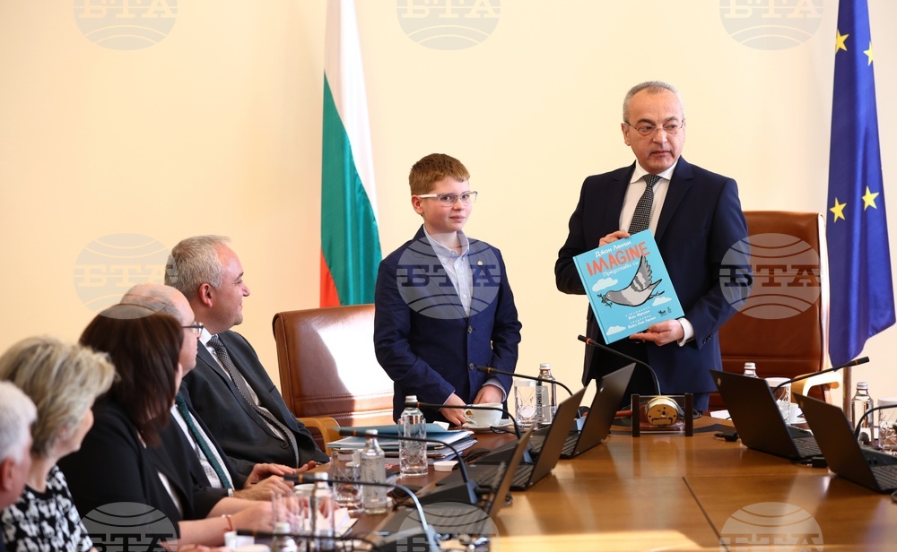 София (21 декември 2022) Правителството провежда редовно заседание в сградата на Министерски съвет. На снимката: Гълъб Донев, министър-председател и Божидар Лалов, ученик от 6-ти клас, откриха заедно заседанието.
