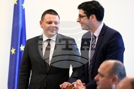 София (29 декември 2022) Служебното правителство провежда заседание в сградата на Министерски съвет. На снимката: заместник министър-председателят по икономическите политики и служебен министър на транспорта и съобщенията Христо Алексиев (вляво), заместник министър-председателят по управление на европейските средства Атанас Пеканов (вдясно).