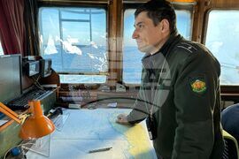 Средиземно море (3 януари 2023) Българският военен научноизследователски кораб Св. св. Кирил и Методий" (НИК 421) продължава да плава на запад в Средиземно море, следвайки курса си към Картахена. Испанският пристанищен град е първата междинна спирка по пътя към о-в Ливингстън, където корабът ще подпомогне 31-ата българска антарктическа експедиция. Плаването от Варна до Ливингстън ще продължи около 40 дни. В сутрешните часове на 3 януари маршрутът на НИК 421 го доближи на около 25 мили от африканския бряг. Около 9:00 часа българско време корабът премина покрай архипелага Галитски острови, разположени северно от Тунис и североизточно от Алжир. Добрата видимост позволи на екипажа и курсантите от висшето военноморско училище „Никола Вапцаров" да видят ясно африканския бряг по изгрев. На снимката: Константин Карагьозов.