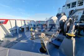 Средиземно море (3 януари 2023) Както всеки друг кораб, военният научноизследователски кораб „Св. св. Кирил и Методий” (НИК 421) застава на рейд, акостира в залив или пристанище, спускайки котва или прикрепвайки се с въжета към кей. Котвеното устройство на НИК 421 е съставено от няколко основни компонента - две котви, всяка от които е с котвена верига, приспособления за тяхното спускане и прибиране – брашпил, както и шпилове за швартови въжета. Котвите на кораба са разположени на всеки от бордовете на носа – една на ляв и една на десен. Брашпилът, който движи котвите, е прикрепен с фундамент към палубата на носа. Той е съставен от задвижващ механизъм, два швартови барабана и две котвени звезди. Швартовите барабани обират или отпускат въжетата, които се използват за завързване на кораба към кей. В котвената звезда „лягат“ звената (халките) на веригата, която ги спуска или вади към котвен сандък, където се събира веригата, обясни пред БТА офицерски кандидат Андрей Петров, вахтен офицер на НИК 421. Всяка от котвените вериги на „Св. св. Кирил и Методий“ е с дължина от около 300 метра. Пресфото - БТА снимка: Константин Карагьозов (ЕД)