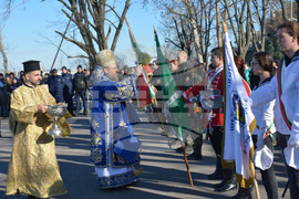 Русе (6 януари 2023) Йорданов ден бе честван в Русе. Русенският Митрополит Наум благослови бойните знамена на русенския гарнизон. Пресфото БТА Снимка: Бисер Тодоров (ЕД)