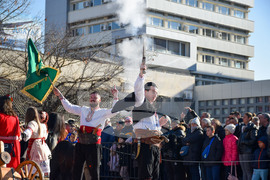 Благоевград (8 януари 2023) Хиляди кукери дефилираха днес по централните улици на Благоевград по време на „Кукерски игри в Пиринско“. Фестивалът представи единадесет групи от цялата община, както и гостуващи маскарадни групи от областта.