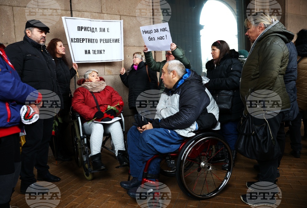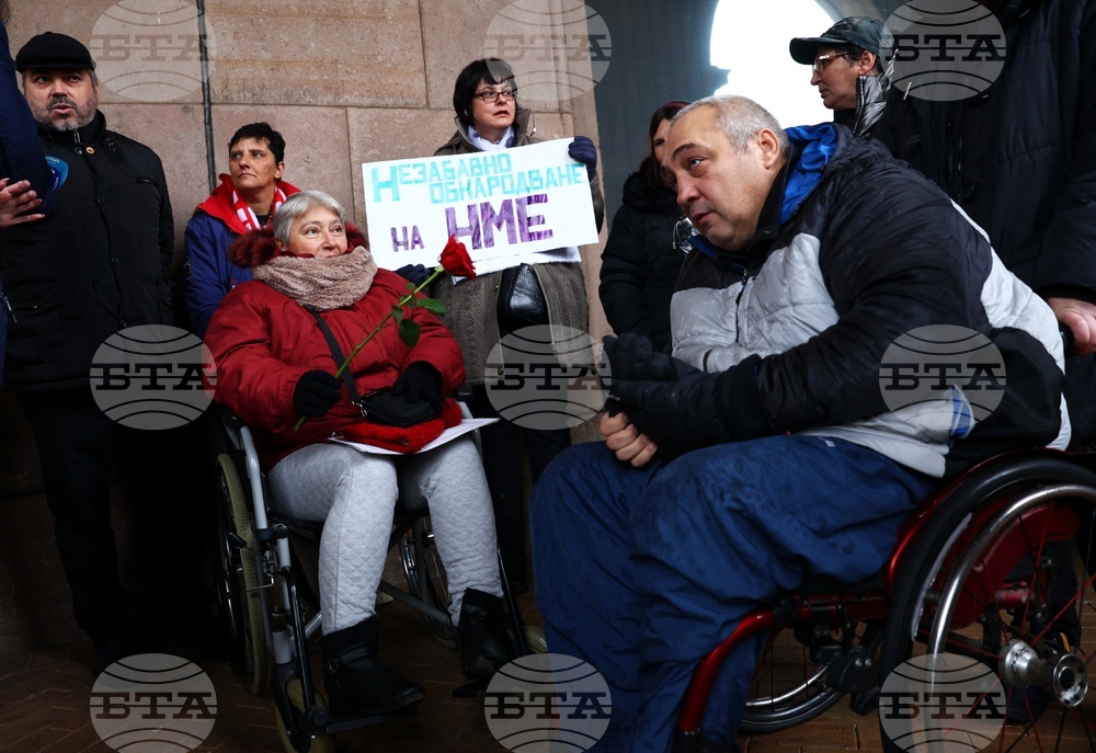 София (10 януари 2023) Протест на хора с увреждания, подкрепен от Фондация “Множествена склероза България”, срещу проблемите в ТЕЛК и НЗОК с искане за незабавно внасяне на Наредба за медицинска експертиза в дневния ред на МС за 12.01.2023 г. се провежда пред сградата на Министерски съвет. Пресфото – БТА снимка: Минко Чернев (ЕД)
