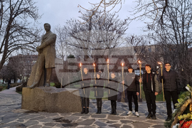 Чирпан (14 януари 2023) За 55-ти път в Чирпан бяха открити "Яворовите януарски дни", които са посветени на рождението на поета Пейо Яворов. Роденият на 13 януари 1878 година Пейо Тотев Крачолов е смятан за един от най-големите български поети на XX век. Честванията започнаха от родния дом на поет и революционер, където беше открита изложба "130 години от създаването на списание "Мисъл"- ярка българска диря и европейско културно наследство". Там беше запален традиционният Яворов огън на поезия, и пренесен до едноименния парк, в който се издига паметникът на твореца. На снимката: Тържествено слово за Яворов произнесе член-кореспондентът на Българска академия на науките д-р Иван Гранитски.