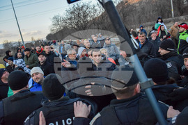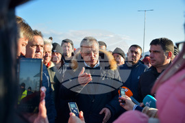 Благоевград (15 януари 2023) Протестиращи затвориха автомагистрала „Струма“ при Благоевград. Причина за протеста е недоволството на хората, че повече от година не започва демонтажът и строителството на пропадналия мост при Покровнишко шосе. Мостът е най-пряката връзка между Благоевград и шест села в общината. След около половинчас движението на автомагистрала „Струма“ беше освободено, но протестът се премести на главния път Е-79, в района между полигона и кръговото кръстовище при пътен възел „Юг“, който свързва автомагистралата с главния път. На снимката: Илко Стоянов – кмет на Община Благоевград.