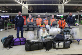 София (11 февруари 2023) Последната група от 31-вата научна експедиция на Антарктида замина от Терминал 2 на Летище София, за остров Ливингстън. Това са мениджъра по логистиката на Националния център за полярни изследвания Драгомир Матеев (дясно), микробиоложките доц. д-р Петя Орозова и гл. ас.д-р Снежана Русинова-Видева, ихтиологът доц. д-р Тихомир Стефанов, почвоведът д-р инж. Чавдар Желев, логистикът-строител инж. Невян Симеонов и логистикът-полевия асистент Александър Недялков. Експедицията ще завърши през първата половина на месец март с отплаването на кораба към родните брегове.