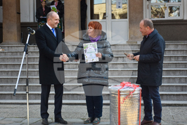 Село Устина (14 февруари 2023) Президентът Румен Радев награди победителите в конкурса на село Устина за „Най-добро домашно вино". Древната традиция повелява, че виното е искрата на живот, а друга повеля казва, че истински може да работи този, който знае как да се весели и уважава традициите, каза в приветствието си президентът. Той посочи, че празникът, посветен на лозарите и винарите, ни свързва хилядолетните традиции на предците. Хората чакат този ден цяла година и когато настъпи кулминацията на празника се отварят бъчвите, наливат се бъклиците, взимат се ножиците и се отправят към лозовите масиви, каза кметът на община „Родопи“ Павел Михайлов (на снимката). Пресфото-БТА снимка: Боян Ботев (ЕД)