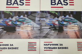 Самоков (28 февруари 2023) В конферентната зала на хотел "Арена" Самоков започва тримесечнен курс. По време на курса ще се обучават хора, които имат желанието да развият собствен бизнес. На снимката (от ляво надясно): изпълнителният директор на Америка за България Десислава Тальокова, главният изпълнителен директор на Американската търговска камара в България, проектен лидер на програмата "Base" Александър Грозданов, заместник-кметът на Община Самоков Дончо Зашев, програмен директор „Бизнес, предприемачество и технологии“, Фондация "Америка за България" Надя Захариева, изпълнителният директор на инддустриален клъстър "Средногорие" Николай Минков.