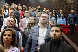 Събитието се провежда в Аула "Максима" на Университета за национално и световно стопанство(УНСС). Присъстват: президентът Румен Радев (на снимката), министри от служебния кабинет и други официални лица.