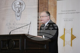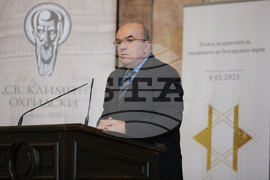 София (9 март 2023) В аулата на Ректората на Софийския университет „Св. Климент Охридски“ се провежда Международна конференция на тема: Ролята на юристите за спасяването на българските евреи. В конференцията участват български и чуждестранни учени и общественици. На снимката: ректорът на Софийския университет „Св. Климент Охридски” проф. Анастас Герджиков.