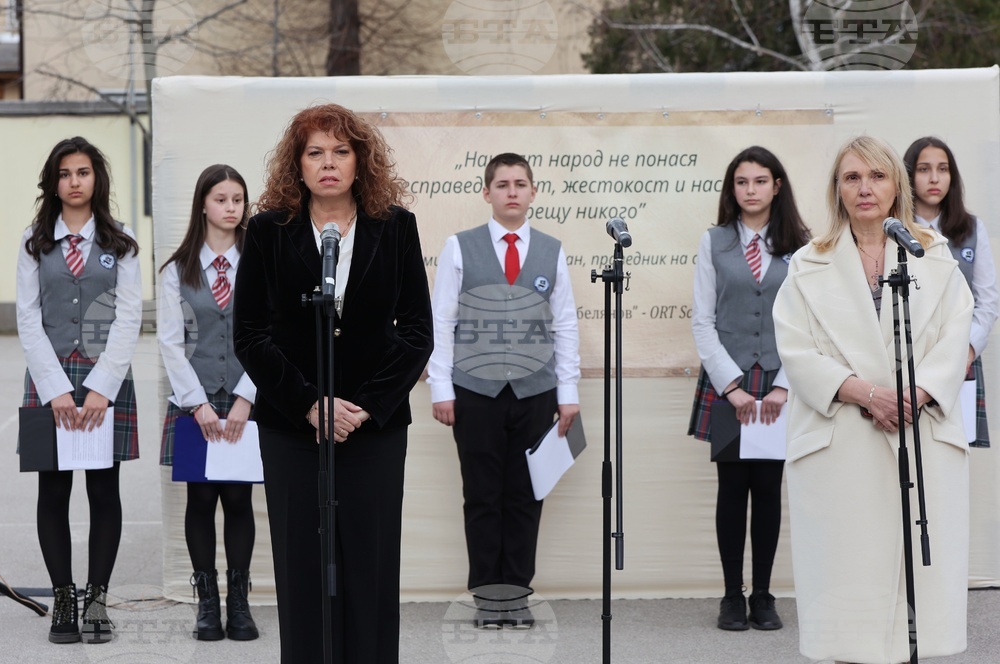 София (9 март 2023) Пред стената на българските праведници на света в 134-о Средно училище „Димчо Дебелянов" - ORT School се провежда официална церемония по отбелязването на 80-ата годишнина от спасяването на българските евреи и в израз на почит към паметта на невинните жертви на Холокоста. Стената на българските праведници на света е поставена в двора на училището от Роман Стоянов, внук на праведника на света Младен Иванов.