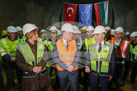 Тунелът е с дължина един километър. С напредъка на строителството се запозна и посланикът на Турция у нас Айлин Секизкьок (вдясно). България е транзитна страна за Турция и по време на земетресението се доказа колко важна е инфраструктурата, за да достигнат всички тези помощи до Турция, каза посланик Секизкьок. Присъства и собственикът на компанията изпълнител Исмаил Доан.
