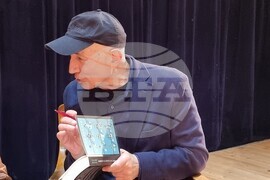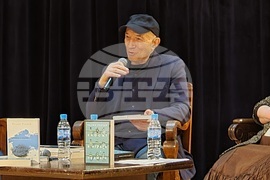 София (23 март 2023) Снощи в Театралната зала на Софийски университет бяха представени две книги на писателя и поет Палми Ранчев (на снимката). Това са стихосбирката му с избрана поезия „Под шапката на скитника - подреждане на уличните безпокойства” (Изд. Scribens) и романът му „Хаосът в играта на джаги” (Изд. „Жанет 45”). Освен автора, в премиерата участваха още писателят Митко Новков, поетесата Силвия Чолева и литературоведът Росица Чернокожева. Снимка: Яница Христова/БТА (EД)