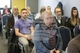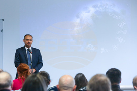 София (3 април 2023) В София Тех Парк се откриват информационни дни, организирани от министерството на иновациите и растежа и Европейската космическа агенция (ЕКА) и посветени на възможностите за участие на български фирми и научни организации в Деветата тръжна процедура на ЕКА за България. На снимката: заместник-министърът на иновациите и растежа Стефан Савов.
