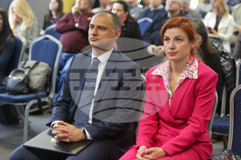 София (3 април 2023) В София Тех Парк се откриват информационни дни, организирани от министерството на иновациите и растежа и Европейската космическа агенция (ЕКА) и посветени на възможностите за участие на български фирми и научни организации в Деветата тръжна процедура на ЕКА за България. На снимката: заместник-министърът на иновациите и растежа Стефан Савов и главен експерт в дирекция ,,Политики и анализи“ към Министерство на иновациите и растежа Петя Пиперкова.