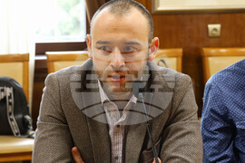 Бургас (5 април 2023) В заседателната зала на Община Бургас се провежда пресконференция по повод реализацията на съвместна кампания между Сдружение „Младите лекари" и Община Бургас, за профилактика, превенция и промоция на здравето сред жителите на града. В събитието участват представители на сдружение „Младите лекари" председателят на сдружението д-р Стамен Пишев, заместник председателят д-р Диян Господинов, секретарят на сдружение „Младите лекари" д-р Павел Минев и членове на Управителния съвет. На снимката: д-р Павел Минев.
