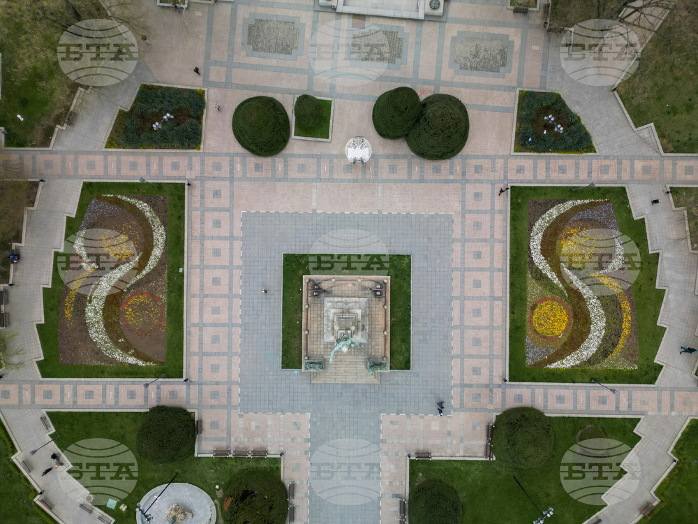 Русе (6 април 2023) Изглед от Русе, сниман с дрон. На снимката: национален паметник-костница Пантеон на възрожденците. Снимка: Цветомир Петров/БТА