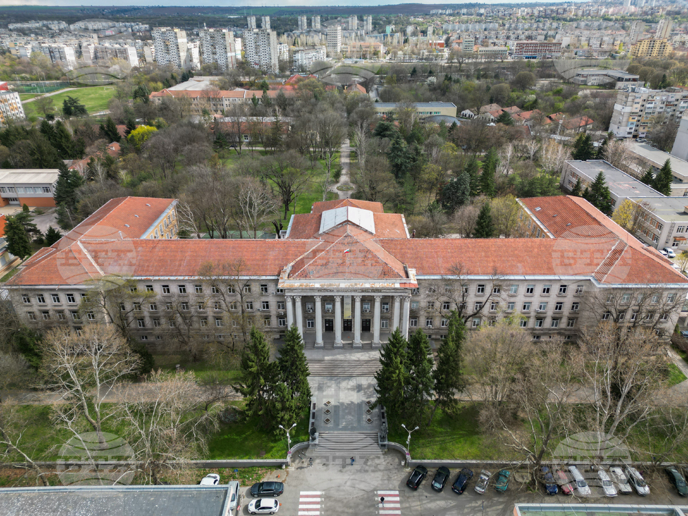 Русе (6 април 2023) Изглед от Русе,сниман с дрон. На снимката: Русенски университет "Ангел Кънчев". Снимка: Цветомир Петров/БТА