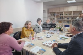 Разград (7 април 2023) Откъси от любими свои произведения четоха евроексперти, писатели и библиотечни специалисти в Разград. Домакин на проявата, организирана от Регионалната библиотека „Проф. Боян Пенев“ беше Областният информационен център. По време на срещата прозвучаха пасажи от романи и стихотворения от известни български и чуждестранни автори. Директорът на библиотеката Димитър Петров благодари на екипа на ОИЦ, че вече десета поредна година се включват в инициативата „Маратон на четенето“. Снимка: Садет Кърова/БТА (ЕД)