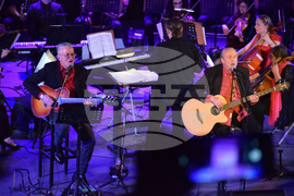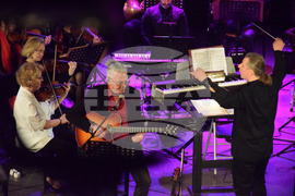 Благоевград (24 април 2023) Музикантите от „Фондацията“ и оркестърът на Музикално - драматичен театър „Константин Кисимов“ Велико Търново поведоха публиката в Благоевград на „Симфонично пътешествие“ с едноименния им концерт. Кирил Маричков, Иван Лечев, Дони, Славчо Николов и Венко Поромански (на снимката), заедно с театралния оркестър изпълниха фрагменти от класически произведения и мюзикъли, под диригентската палка на маестро Георги Патриков. В програмата се включиха и солисти на Музикално - драматичен театър „Константин Кисимов“. Във втората част на концерта звучаха любими песни на „Щурците“, ФСБ, Б.Т.Р., Дони и други, под надслов „Десет години около света“, посветен на годишнината на формацията.