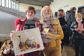 Самоков (25 април 2023) В Общинска библиотека „Паисий Хилендарски" в Самоков се състоя изложба на художника Мария Ицова (в средата). Тя показа своите творби. Голяма част от тях са исторически паметници, намиращи се в Самоков, както и пейзажи на Рила планина.