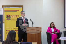 София (4 май 2023) Висшето училище по застраховане и финанси (ВУЗФ) организира отворена лекция с проф. д-р Едуард Герхард преподавател и международен представител на Факултета по икономика, Coburg University of Applied Sciences and Arts, Германия на тема: Управление на проекти. Визуализация на бизнес данни за вземане на по-добри решения. В събитието участва зам. ректорът по учебната и научноизследователската дейност проф. д-р Юлия Добрева.