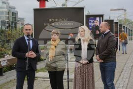 София (4 май 2023) Приносът на еврейската общност за политическия, обществения и културния живот в България е темата на изложба, която се открива днес на столичния „Мост на влюбените“ до Националния дворец на културата (НДК). Изложбата е по повод 80-ата годишнина от спасяването на евреите в България и почитането на паметта на 11 343 жертви от Беломорска Тракия, Вардарска Македония и град Пирот. Използвани са фотоматериали от частни колекции, архивите на „Шалом“, вестник „Еврейски вести“ и списание „Естрея“, държавна агенция „Архиви“, БТА и архива на театър „Българска армия“. На снимката (от ляво надясно): авторът на експозицията Леа Коен, председателят на организацията на евреите в България "Шалом" проф. Александър Оскар, кураторът на експозицията Виктория Бисерова и председателят на Столичния общински съвет Георги Георгиев.