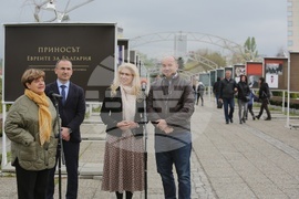 София (4 май 2023) Приносът на еврейската общност за политическия, обществения и културния живот в България е темата на изложба, която се открива днес на столичния „Мост на влюбените“ до Националния дворец на културата (НДК). Изложбата е по повод 80-ата годишнина от спасяването на евреите в България и почитането на паметта на 11 343 жертви от Беломорска Тракия, Вардарска Македония и град Пирот. Използвани са фотоматериали от частни колекции, архивите на „Шалом“, вестник „Еврейски вести“ и списание „Естрея“, държавна агенция „Архиви“, БТА и архива на театър „Българска армия“. На снимката (от ляво надясно): авторът на експозицията Леа Коен, заместник-кметът по направление "Култура, образование, спорт и младежки дейности" Мирослав Боршош, председателят на организацията на евреите в България "Шалом" проф. Александър Оскар, кураторът на експозицията Виктория Бисерова и председателят на Столичния общински съвет Георги Георгиев.
