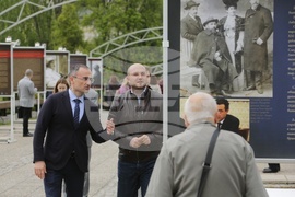 София (4 май 2023) Приносът на еврейската общност за политическия, обществения и културния живот в България е темата на изложба, която се открива днес на столичния „Мост на влюбените“ до Националния дворец на културата (НДК). Изложбата е по повод 80-ата годишнина от спасяването на евреите в България и почитането на паметта на 11 343 жертви от Беломорска Тракия, Вардарска Македония и град Пирот. Използвани са фотоматериали от частни колекции, архивите на „Шалом“, вестник „Еврейски вести“ и списание „Естрея“, държавна агенция „Архиви“, БТА и архива на театър „Българска армия“. На снимката: заместник-кметът по направление "Култура, образование, спорт и младежки дейности" Мирослав Боршош.