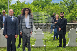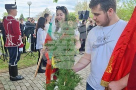 И днес на българското военно гробище край Ново село пристигнаха много хора, а отбелязването започна с химните на България, Република Северна Македония и химна на Европа, изпълнени от оркестъра на Националното музикално училище "Любомир Пипков" в София.