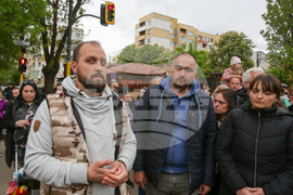 София (9 май 2023) Стотици граждани се събраха на кръстовището между бул. "Сливница" и ул. "Русе“ в столицата, където през нощта на 7 срещу 8 май шофьор на 18 години блъсна и причини смъртта на 23-годишния Я. С. и 24-годишната А. М, които пресичали на пешеходна пътека. На снимката: Георги Тодоров (ляво).