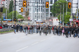 София (9 май 2023) Стотици граждани се събраха на кръстовището между бул. "Сливница" и ул. "Русе“ в столицата, където през нощта на 7 срещу 8 май шофьор на 18 години блъсна и причини смъртта на 23-годишния Я. С. и 24-годишната А. М, които пресичали на пешеходна пътека.