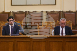 София (10 май 2023) В сградата на Парламента се провежда заседание на Народното събрание. На снимката (от ляво надясно): служебен заместник министър-председател по управление на европейските средства Атанас Пеканов и служебният премиер Гълъб Донев. Снимка: Цветомир Петров/БТА (ЕД)