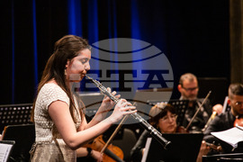 Бургас (10 май 2023) В Държавна опера Бургас се провежда Симфоничен концерт с участието на възпитаници на Национално училище за музикално и сценично изкуство "Проф. Панчо Владигеров" Бургас. Диригент е Йордан Дафов, а концертмайстор Ваня Златева. На снимката: Йоана Задикян.