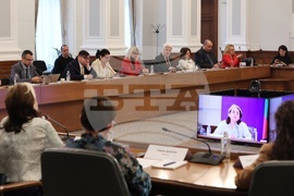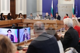София (11 май 2023) В Министерски съвет се провежда публична дискусия на тема „Открито управление – цел и фокус на доброто управление“. На снимката: директорът на Българския институт за правни инициативи Биляна Гяурова-Вегертседер (ляво), началникът на отдел в Министерски съвет Искрен Иванов (втори отляво), директор на Български център за нестопанско право Надя Шабани (трета отдясно).