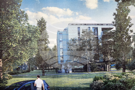 София (11 май 2023) В Националния пресклуб на БТА - София се провежда на тема: „Скандалното решение на СОС от 2018 г. за имотите на Петър Блъсков в кв. Мусагеница и възможностите за излизане от кризата с общественото напрежение и доверие“. На снимката: Макет на бъдещата сграда. Снимка: София Господинова/БТА (ЕД)