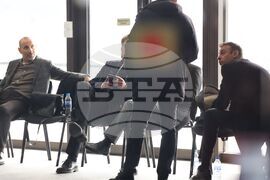 София (18 март 2022) В НДК се събраха 82 футболни клуба, за да провеждат "алтернативен конгрес" на Български Футболен Съюз, след като БФС отмени събранието на 18-и март със свое решение от 1-ви този месец. На снимката: Мартин Петров, Димитър Бербатов, Стилиян Петров (от ляво надясно).