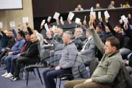 София (18 март 2022) В НДК се събраха 82 футболни клуба, за да провеждат "алтернативен конгрес" на Български Футболен Съюз, след като БФС отмени събранието на 18-и март със свое решение от 1-ви този месец. На снимката: Георги Градев.