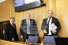София (12 май 2023) Столичен общински съвет (СОС) заседава извънредно относно пътната безопасност в присъствието на представители на ръководството на МВР. На снимката (от ляво надясно): главният секретар на МВР Петър Тодоров, служебния вътрешен министър Иван Демерджиев, председателят на Столичния общински съвет Георги Георгиев.