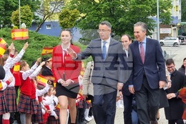 Кърджали (12 май 2023) Посланикът на Кралство Испания Алехандро Поланко Мата (дясно), придружаван от представители на посолството у нас, бе на посещение в кърджалийското училище СУ “П. Р. Славейков“ по повод инициативата Месец на Испания. Снимка: Валентина Стоева/БТА(ЕД)