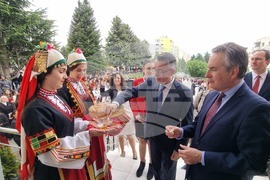 Кърджали (12 май 2023) Посланикът на Кралство Испания Алехандро Поланко Мата, придружаван от представители на посолството у нас, бе на посещение в кърджалийското училище СУ “П. Р. Славейков“ по повод инициативата Месец на Испания. На снимката: кметът на Кърджали д-р инж. Хасан Азис (ляво), посланикът на Кралство Испания Алехандро Поланко Мата (дясно). Снимка: Валентина Стоева/БТА(ЕД)