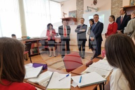 Кърджали (12 май 2023) Посланикът на Кралство Испания Алехандро Поланко Мата, придружаван от представители на посолството у нас, бе на посещение в кърджалийското училище СУ “П. Р. Славейков“ по повод инициативата Месец на Испания. Снимка: Валентина Стоева/БТА(ЕД)