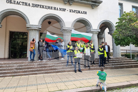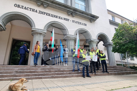 Кърджали (12 май 2023) Служители на следствения арест в област Кърджали протестират пред сградата на ОД на МВР срещу извършените реформи в Министерството на правосъдието.