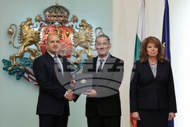 София (19 май 2023) На церемония в Гербовата зала на „Дондуков" 2 президентът Румен Радев връчва български документи за самоличност на председателя на закрития от властите в Република Северна Македония български културен център „Иван Михайлов“ в Битоля Любчо Георгиевски и на Благой Шаторов – секретар на центъра.