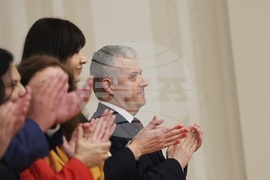 София (19 май 2023) На церемония в Гербовата зала на „Дондуков" 2 президентът Румен Радев връчва български документи за самоличност на председателя на закрития от властите в Република Северна Македония български културен център „Иван Михайлов“ в Битоля Любчо Георгиевски и на Благой Шаторов – секретар на центъра. На снимката: Гвардейски представителен духов оркестър.