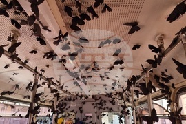 Букурещ (22 май 2023) Нестандартна трамвайна обиколка предлагат в Тимишоара - европейска столица на културата. Гостите и жителите на румънския град имат възможност да го обиколят със стар трамвай, целият покрит с черни пеперуди. Идеята е на мултидисциплинарния мексикански художник Карлос Аморалес. Снимка: Мартина Ганчева/БТА (ПБ)