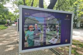 Стара Загора (22 май 2023) Ретроспективна фотоизложба на моменти от изминалите девет издания на Международния фестивал за ново европейско кино „Златната липа“ се откри днес на една от централните алеи в парк „Пети октомври“ в Стара Загора. На снимкта: фотографите Димитър Александров, Жейна Желева и Рад Димитров.