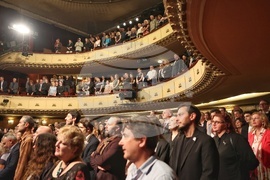 Наградите са единствени по рода си театрални награди в България, при които отличията се дават от артисти за артисти“ и всяко от тях е професионален и естетически избор на хора, правещи театър. БТА е основен медиен партньор. На снимката: директорът на театър “Българска армия” Мирослав Пашов и столичният кмет Йорданка Фандъкова.