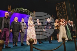 Наградите са единствени по рода си театрални награди в България, при които отличията се дават от артисти за артисти“ и всяко от тях е професионален и естетически избор на хора, правещи театър. БТА е основен медиен партньор. На снимката: актрисата Елена Райнова (в средата), удостоена с почетен „Аскеер“ за творческа чест и принос в развитието на театралното изкуство.