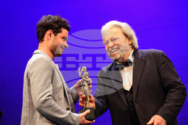 Наградите са единствени по рода си театрални награди в България, при които отличията се дават от артисти за артисти“ и всяко от тях е професионален и естетически избор на хора, правещи театър. БТА е основен медиен партньор. На снимката: актьорът Стойко Пеев (вдясно) връчи отличие за изгряваща звезда на